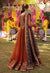 Envelop yourself in the Symphony of Love with this rust kalidaar from the "Gur Naal Ishq Mitha" collection. The grandeur of the neckline and border is a statement of grace resonating with the richness of romantic emotions. The gold zari and deep purple and rust threadwork adorned with gold cupped sequins weave tales of love on the canvas of the shirt. Paired with an embroidered purple dupatta, this ensemble is a symphony of emotions where every stitch is a note in the melodic dance of love.
