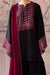 A premium dHANAK black farshi shalwar and shirt set, adorned with embroidery and sequin accents, paired with a chiffon dupatta finished with tassels on all four corners